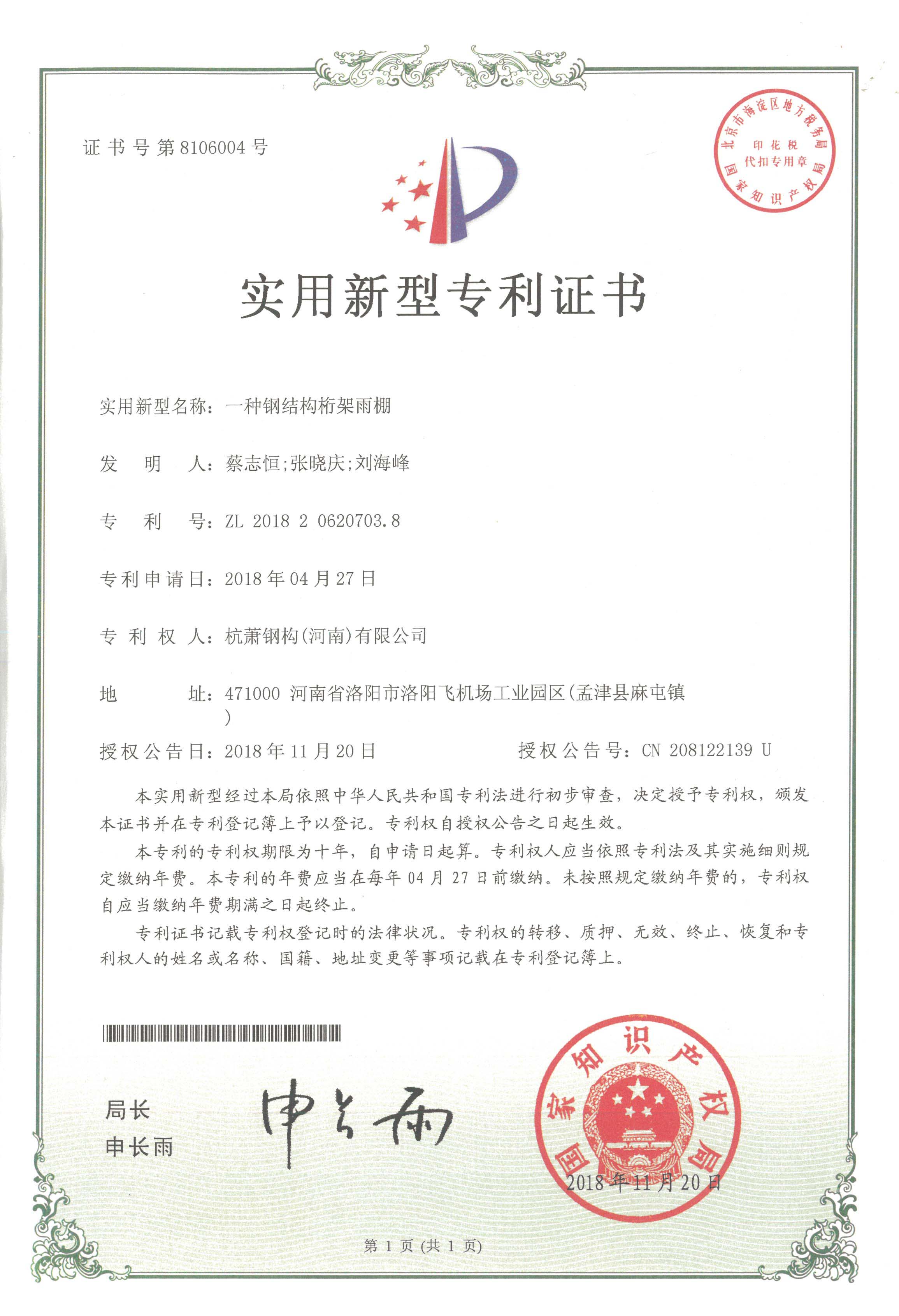 河南杭蕭秉承杭蕭鋼構(gòu)創(chuàng)新精神,始終堅持走自主研發(fā)創(chuàng)新之路,將增強自主創(chuàng)新能力視為企業(yè)發(fā)展壯大的關(guān)鍵。截至目前,河南杭蕭已獲得國家專利授權(quán)證書68項;多項專利權(quán)的獲得,有利于提高產(chǎn)品穩(wěn)定性及生產(chǎn)效率,更有利于加強公司自主知識產(chǎn)權(quán)保護,充分發(fā)揮公司在鋼結(jié)構(gòu)領(lǐng)域的技術(shù)領(lǐng)先優(yōu)勢,提高企業(yè)口碑和技術(shù)實力。