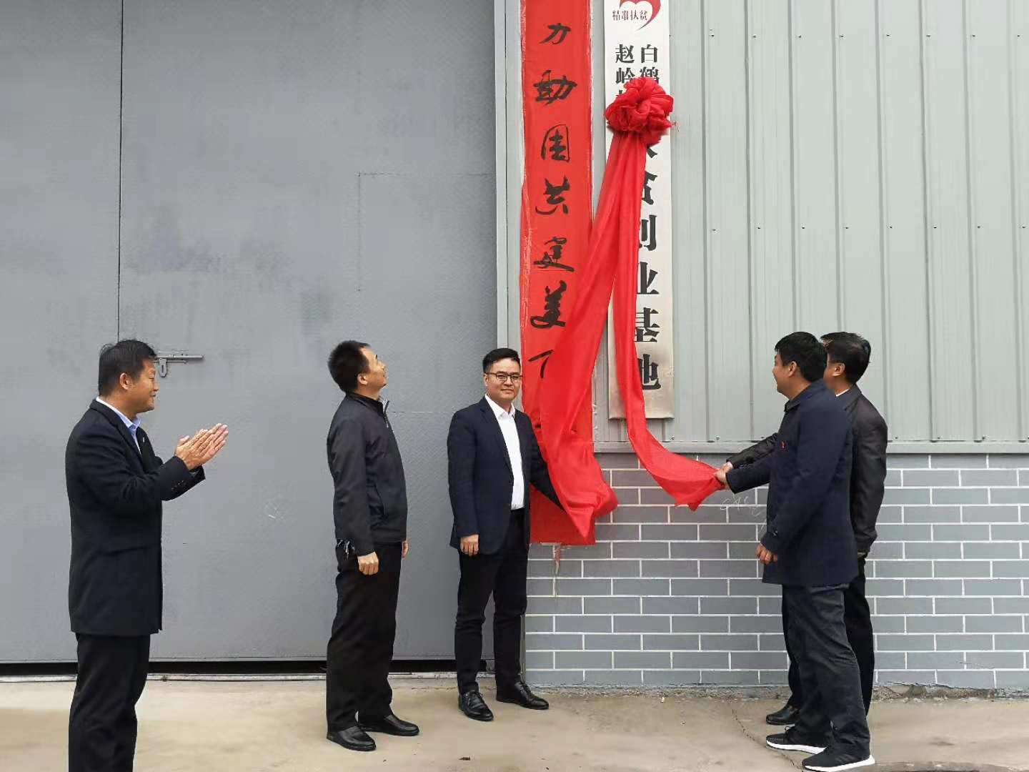 副縣長(zhǎng)范欽良、黨委書記謝睿、河南杭蕭總經(jīng)理蔡志恒等一起為趙嶺村扶貧車間揭牌