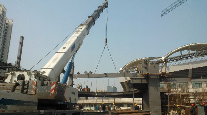 杭政儲(chǔ)出【2004】69號地塊鋼結(jié)構(gòu)工程三至四層桁架安裝施工是工程最大難點(diǎn)。為此,項(xiàng)目部編制了桁架吊裝專項(xiàng)方案,并對地下室樓板加固進(jìn)行了荷載核算,解決了單根構(gòu)件重量大、吊裝車輛無法在基坑外吊裝等難題,確保桁架的安全吊裝。