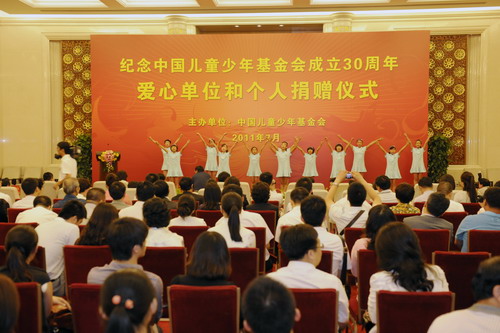 ??? 2011年7月5日,中國兒童少年基金會(下稱“兒基會”)在北京人民大會堂舉行“紀念中國兒童少年基金會成立30周年——愛心單位和個人捐贈儀式”,為支持“安康計劃—兒童安全教育工程”(以下簡稱工程),我司捐贈現(xiàn)金15萬元,用于建設(shè)壹間安全體驗教室。