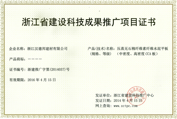 專家認(rèn)為, 漢德邦建材的生產(chǎn)規(guī)模大、工藝優(yōu)良、設(shè)備先進(jìn)、生產(chǎn)效率高、且質(zhì)量管理體系通過(guò)ISO9001認(rèn)證,環(huán)境管理體系通過(guò)ISO14001認(rèn)證,保證了產(chǎn)品質(zhì)量的穩(wěn)定性。壓蒸無(wú)石棉纖維素纖維水泥平板(CCA板)符合相關(guān)標(biāo)準(zhǔn)的要求,產(chǎn)品經(jīng)用戶使用,反映良好,符合國(guó)家綠色建材方向,可在浙江省建設(shè)工程中推廣應(yīng)用。