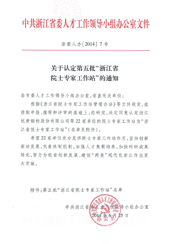 近日,中共浙江省委人才工作領導小組根據(jù)《浙江省院士專家專家工作站管理辦法》等文件,研究決定,同意認定浙江杭蕭鋼構股份有限公司等22家單位的院士專家工作站為“浙江省院士專家工作站”。