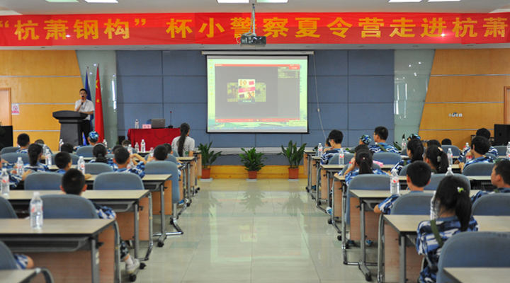 7月10日、17日下午,一營、二營各300名英姿煞爽的“小警察”興致勃勃地來到浙江杭蕭鋼構(gòu)股份有限公司蕭山生產(chǎn)基地,在杭蕭鋼構(gòu)黨代表樓宇的引領(lǐng)下,他們排著整齊的隊(duì)伍、踏著有力的步伐,有序地走進(jìn)了公司的多功能廳,進(jìn)行有關(guān)建筑發(fā)展知識(shí)的學(xué)習(xí)。