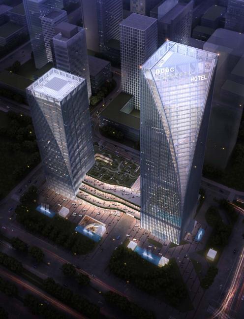 ?? 該項目分為A座和B座及裙房,其中,A座高度199.7米,B座高度135米,總建筑面積約24萬平米,鋼結(jié)構(gòu)部分造價約2.2億元。該項目定位為集金融、商務、酒店、高級公寓為一體的商務綜合體。
