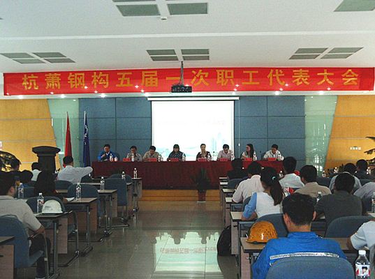 ??? 9月18日,經(jīng)過職代會籌備小組緊張而精心的籌備,杭蕭鋼構(gòu)五屆一次職工代表大會第一次會議在股份公司三樓會議室隆重召開。集團副總裁兼工會主席陳偉英、工會副主席劉保奎、工會委員黃振華、張超及黨、團、股份公司領(lǐng)導在主席臺就坐。共有72名職工代表出席了會議。