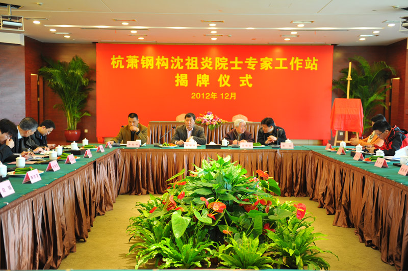 ????杭蕭鋼構(gòu)董事長(zhǎng)單銀木、總經(jīng)理陸擁軍、總工程師陳友泉、杭州杭蕭設(shè)計(jì)有限公司總經(jīng)理?xiàng)顝?qiáng)躍,中國(guó)工程院士沈祖炎、同濟(jì)大學(xué)科技處副處長(zhǎng)李光明、杭州市科協(xié)院士專家服務(wù)中心主任吳挺、蕭山區(qū)科學(xué)技術(shù)協(xié)會(huì)副主席俞校明等出席儀式。