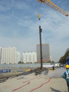 ??? 本工程自12年10月10日開始預(yù)埋錨栓,11月12日開始核心筒10根鋼柱的吊裝,地下主框柱與裙房一節(jié)柱(負(fù)三~負(fù)二層)于11月22日開始吊裝,到12月7日完成地下一節(jié)柱共計56根的安裝工程量。