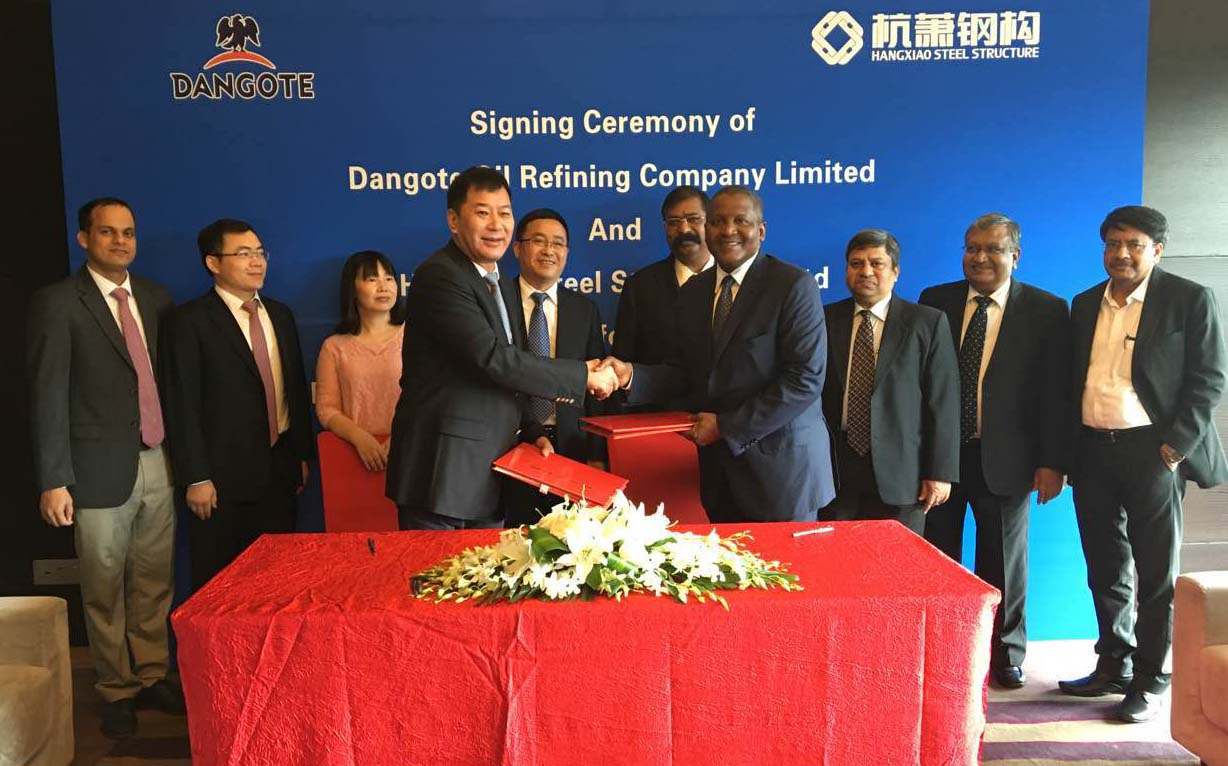 2016年9月1日,杭蕭鋼構(gòu)股份有限公司與尼日利亞制造業(yè)巨頭丹格特集團(Dangote?Group)在北京簽訂了1.12億美元煉油廠鋼結(jié)構(gòu)供貨合同。