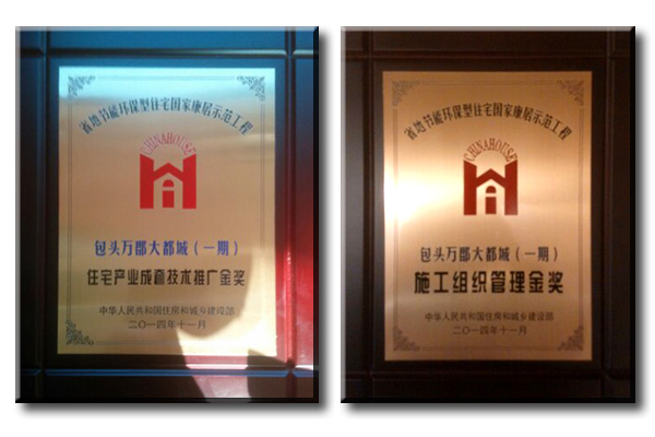 我國(guó)西北部首個(gè)百萬(wàn)方超大型鋼結(jié)構(gòu)住宅群——包頭萬(wàn)郡·大都城是完全采用杭蕭鋼構(gòu)鋼結(jié)構(gòu)住宅體系設(shè)計(jì)建造的典型應(yīng)用和示范工程。此次會(huì)上,該項(xiàng)目及開(kāi)發(fā)商杭蕭鋼構(gòu)控股子公司萬(wàn)郡房地產(chǎn)有限公司分別榮獲“國(guó)家康居示范工程獎(jiǎng)”、“規(guī)劃設(shè)計(jì)金獎(jiǎng)”、“建筑設(shè)計(jì)金獎(jiǎng)”、“施工組織管理金獎(jiǎng)”、“住宅產(chǎn)業(yè)成套技術(shù)推廣金獎(jiǎng)”、“住宅建設(shè)創(chuàng)新單位”以及“住宅創(chuàng)新成績(jī)突出企業(yè)”多項(xiàng)大獎(jiǎng)。