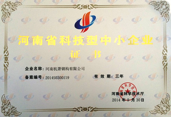 近日,河南杭蕭鋼構(gòu)有限公司喜獲得河南省科技型中小企業(yè)的資格認(rèn)定。據(jù)悉,經(jīng)備案的科技型中小企業(yè)將作為各級(jí)科技管理部門工作的重點(diǎn)服務(wù)對(duì)象,優(yōu)先享受支持科技發(fā)展和成果應(yīng)用轉(zhuǎn)化的財(cái)稅、金融、產(chǎn)業(yè)技術(shù)和人才政策,集成各類科技資源優(yōu)先支持其開展技術(shù)創(chuàng)新活動(dòng),引導(dǎo)金融、創(chuàng)投等機(jī)構(gòu)加大資金支持,促進(jìn)科技型中小企業(yè)持續(xù)健康快速發(fā)展。