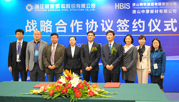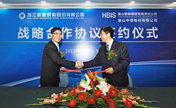 ??? 新華網(wǎng)浙江頻道11月7日電(趙生祥)11月7日,有“中國(guó)鋼構(gòu)第一股”之稱的浙江杭蕭鋼構(gòu)股份有限公司(以下簡(jiǎn)稱杭蕭鋼構(gòu))與唐山中厚板有限公司(以下簡(jiǎn)稱唐鋼中厚板)在浙江杭州簽署戰(zhàn)略合作協(xié)議,杭蕭鋼構(gòu)與唐鋼中厚板本著互信、互惠、優(yōu)勢(shì)互補(bǔ)、雙贏的原則,在材料采購(gòu)、產(chǎn)品品牌宣傳、工藝和技術(shù)支持等方面達(dá)成戰(zhàn)略聯(lián)盟。