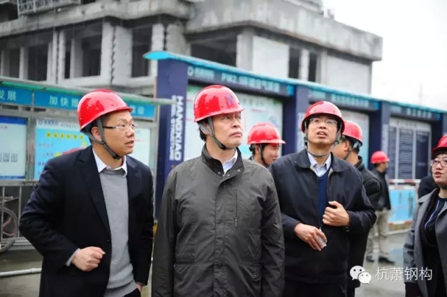 陳宜明總工一行首先蒞臨由杭蕭鋼構(gòu)承建的我國在建規(guī)模最大的鋼結(jié)構(gòu)保障房項目——錢江世紀(jì)城人才專項用房,實地參觀了杭蕭鋼構(gòu)鋼管束組合剪力墻結(jié)構(gòu)住宅體系的施工現(xiàn)場。