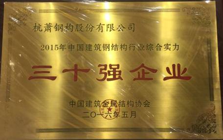 杭蕭鋼構榮獲“2015中國建筑鋼結構行業(yè)綜合實力三十強企業(yè)”稱號