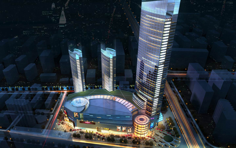 連云港蘇寧廣場(chǎng)工程位于連云港商業(yè)的核心位置——新浦商圈,周邊交通便利,擁有絕佳景觀視野,主題定位為電器旗艦店、頂級(jí)購(gòu)物中心、五星級(jí)索菲特酒店、高檔住宅、酒店式公寓。本工程地下三層、地上最高41層,由3 幢塔樓和商業(yè)裙樓組成,項(xiàng)目總建筑面積約22萬(wàn)平方米,高度200米,建成后將成為連云港市中心地區(qū)乃至蘇北沿海規(guī)模最大、業(yè)態(tài)最全、檔次最高的標(biāo)志性建筑。