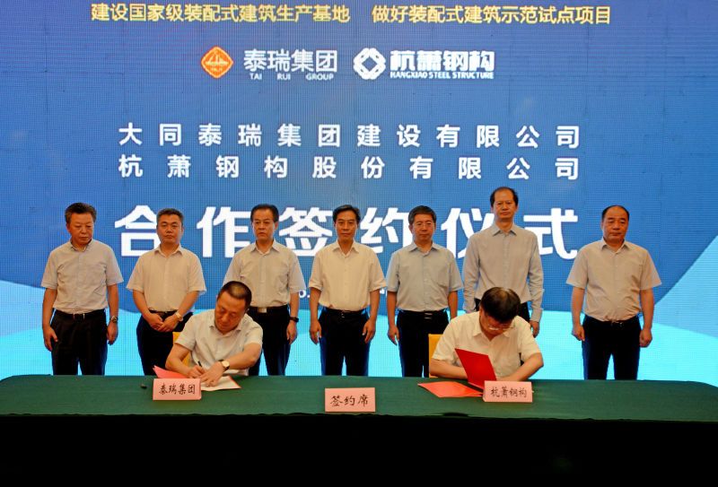 7月20日,杭蕭鋼構股份有限公司(以下簡稱“杭蕭鋼構”)與大同泰瑞集團建設有限公司(以下簡稱“泰瑞集團”)共同打造“大同裝配式綠色建筑集成產(chǎn)業(yè)基地”簽約儀式在太原舉行,這標志著山西省首家裝配式鋼結構產(chǎn)業(yè)基地正式落戶大同。山西省委常委、常務副省長高建民,山西省住建廳廳長李棟梁,大同市委書記張吉福、市長馬彥平,省住建廳總工程師張學峰,大同市副市長劉振國等領導及杭蕭鋼構集團總裁張振勇、泰瑞集團總經(jīng)理張明忠等60余人見證了泰瑞集團與杭蕭鋼構戰(zhàn)略合作簽約。