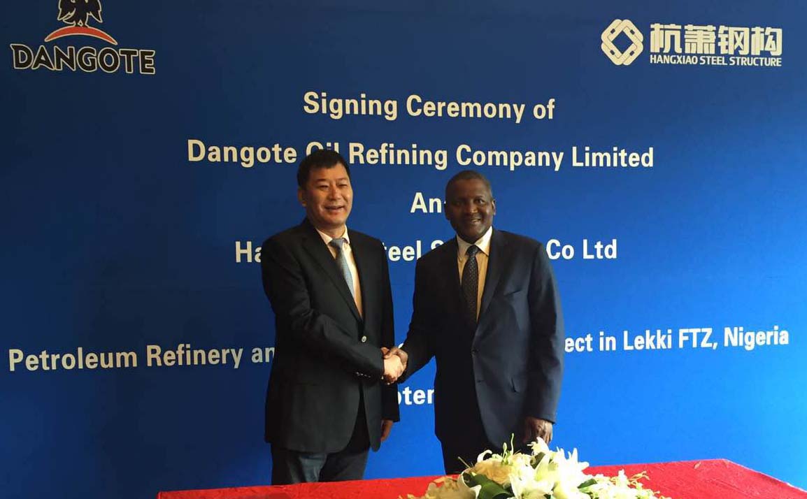 2016年9月1日,杭蕭鋼構股份有限公司與尼日利亞制造業(yè)巨頭丹格特集團(Dangote?Group)在北京簽訂了1.12億美元煉油廠鋼結構供貨合同。