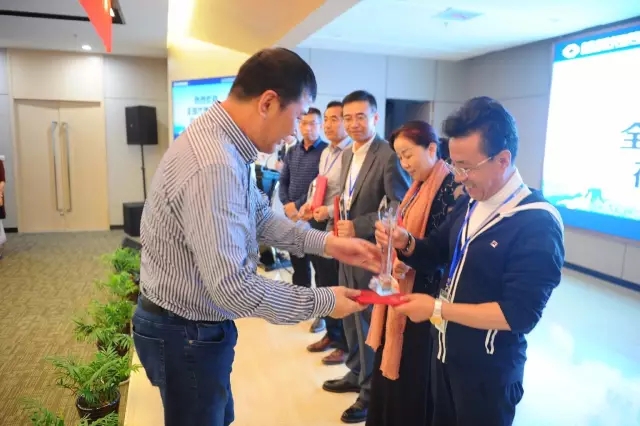 杭蕭鋼構(gòu)董事長單銀木為杰出代理商頒發(fā)榮譽獎杯與證書