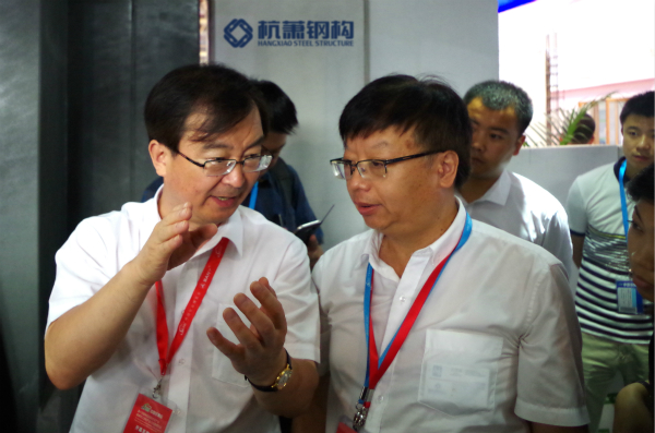 住房和城鄉(xiāng)建設(shè)部副部長王寧(左)與杭蕭鋼構(gòu)副總裁方鴻強(qiáng)就鋼結(jié)構(gòu)住宅體系深入交流