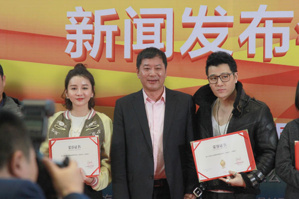 杭蕭鋼構(gòu)董事長(zhǎng)單銀木向主創(chuàng)人員頒發(fā)杭蕭公司榮譽(yù)員工證書(shū)